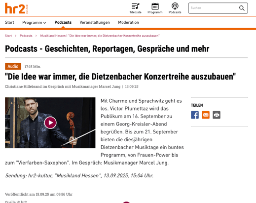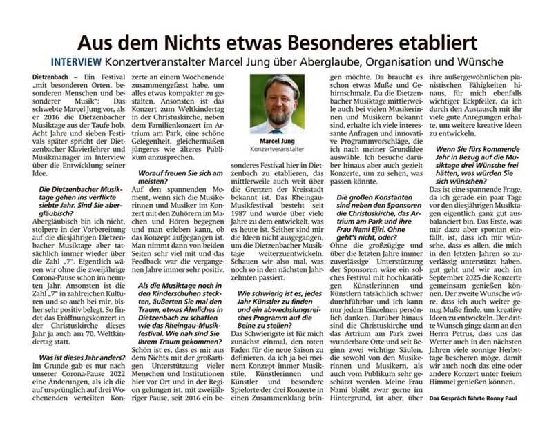 Mein besonderer Dank gilt Herrn Marcel Jung, der erneut mit großem Engagement für ein abwechslungsreiches und hochkarätiges Konzertprogramm gesorgt hat. Auch allen engagierten Freunden und