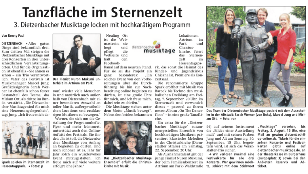 Hier finden Sie von Zeit zu Zeit digitale Materialien zu den diesjährigen Dietzenbacher Musiktagen wie Pressemitteilungen, Flyer, Programmhefte, Künstlerportraits und mehr zum Anschauen und Downloaden!
